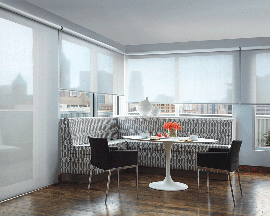 If you’re feeling torn between enjoying your view and feeling comfortable in your home, you don’t have to choose. We know you want the benefits of window coverings. We know you love the unique look these large windows bring to your home. Having window coverings and enjoying your view are not mutually exclusive–you can have it all! We have an entire collection of sheer shadings that give you the best of both worlds. The sheer fabrics protect you and your home from excessive light, harsh glare and harmful UV rays. They also enhance the atmosphere of your home by allowing you maximum view-through in the lowered position. Talk about the best of both worlds!