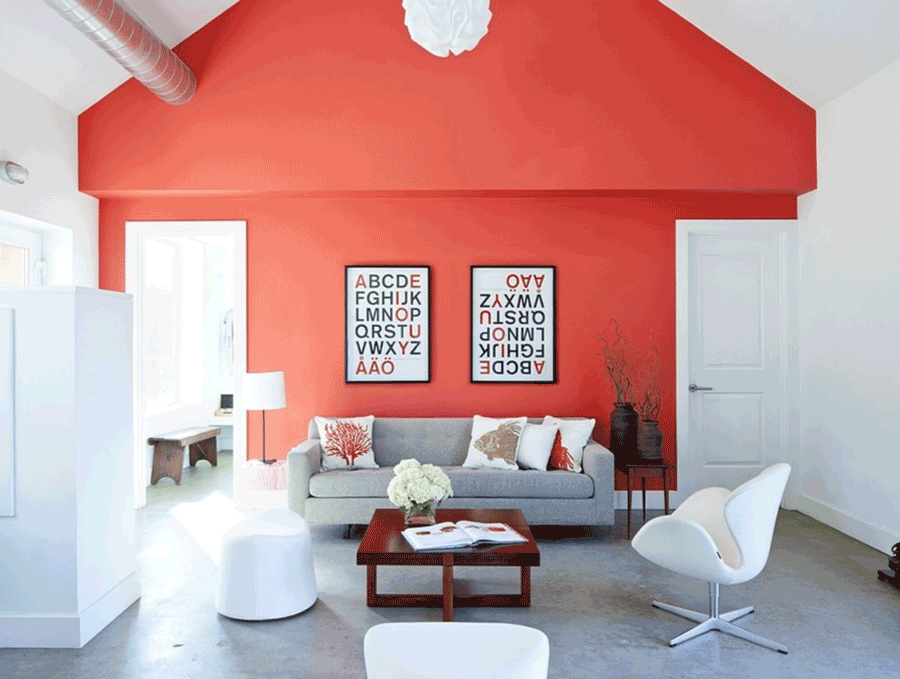 We love accents because you can go big or small–either way, Living Coral will make a difference. Try small touches, like the pillows featured here, or paint an entire wall for a big change.